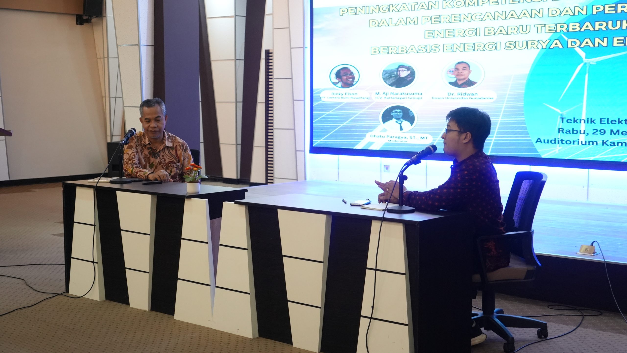 Kegiatan praktisi mengajar merupakan kegiatan ilmiah yang bertujuan untuk transfer pengetahuan dan informasi dari praktisi di bidang energi baru terbarukan, konversi energi, kontrol listrik, dan distribusi tenaga listrik, kepada mahasiswa melalui pengajaran sesuai dengan penerapan ilmu di lapangan. Kegiatan ini diharapkan dapat menjadi transfer knowledge dari praktisi sebagai pihak DUDI kepada para mahasiswa.